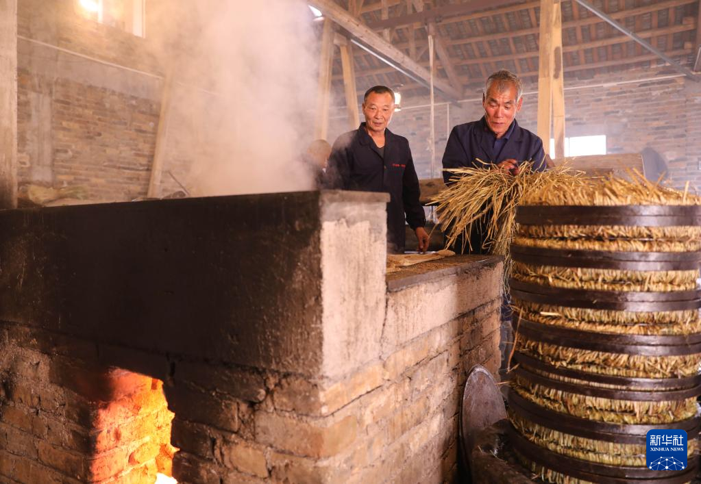 11月29日,在道县祥霖铺镇上渡村,村民在蒸制茶籽粉。新华社发(何红福 摄)