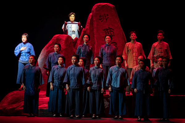 导演在二度创作上积极探索歌仔戏的舞台样式呈现,寻找更符合现代戏剧审美的路径,展现歌仔戏以抒情见长和以生、旦为表演中心。通过表演、视觉传达和音乐表达,以大海、凤凰树为舞台意象,重构革命叙事,激活了人们对英雄的再想象,以平实的视觉讲述厦门革命故事。音乐上既体现歌仔戏曲牌的独特韵味又在板式和多声部曲体上做了新的尝试,力求全剧音乐层次分明、张弛有度并富有表现力和可听性。舞美设计采取色彩的饱和对比变化来体现不同时空,简洁空净的舞台既符合戏曲表演的需要,又有“海”的开阔豁达大度,营造一个极具闽南特色的厦门风情。服装设计撷取“海草”为形象种子,以阿兰为代表的村妇大襟衫上施用绣花、压立体线条等工艺,粗中有细地勾勒这群命运如海草浮萍般漂泊而顽强抗争的闽南妇女群像。