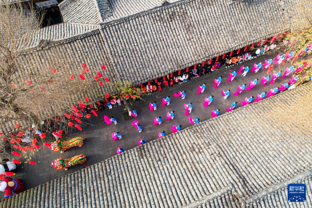 1月8日,在四川省阆中古城,民间艺人在表演绸扇舞(无人机照片)。