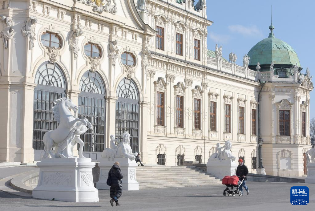 这是2月28日在奥地利维也纳拍摄的上美景宫外景。新华社记者 郭晨 摄