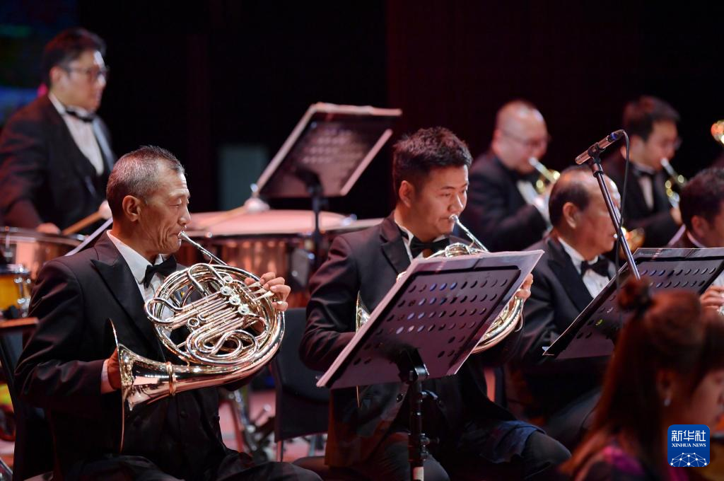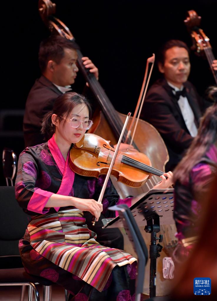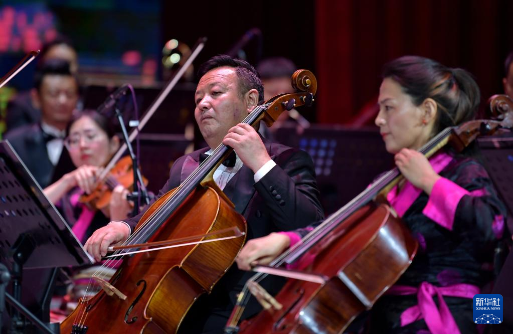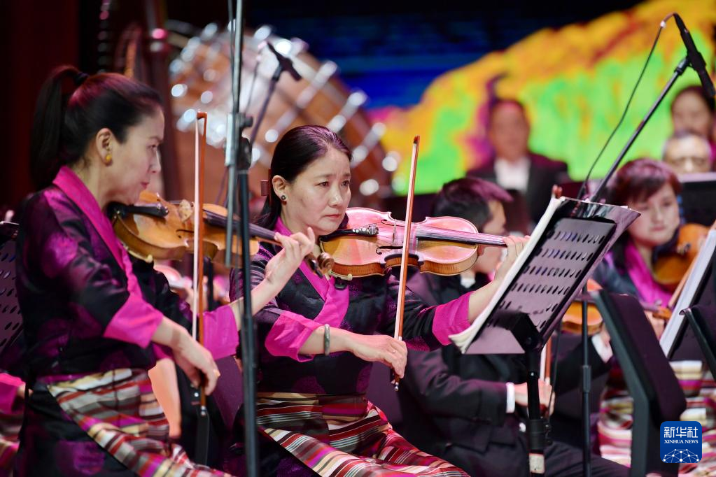 西藏爱乐乐团的艺术家在演奏交响乐《古格幻想》(4月3日摄)。