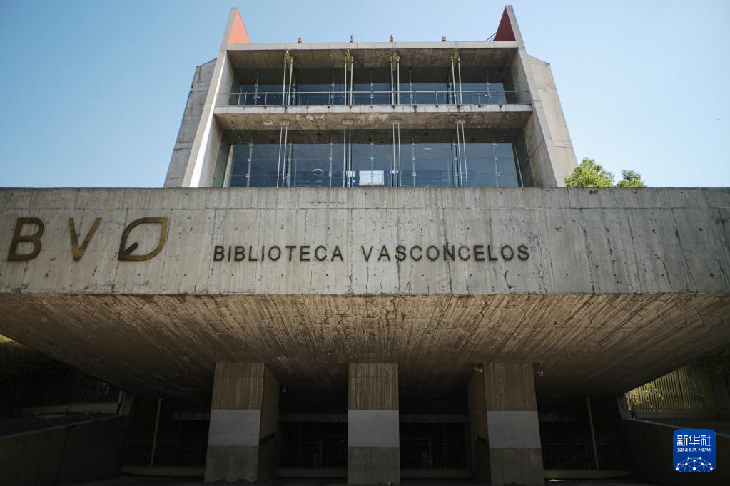 这是4月18日在墨西哥首都墨西哥城拍摄的巴斯孔塞洛斯图书馆外景。