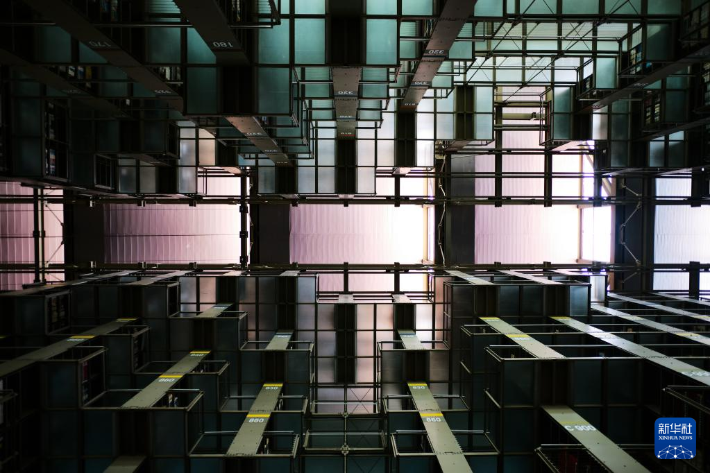 这是4月18日在墨西哥首都墨西哥城拍摄的巴斯孔塞洛斯图书馆的书架。