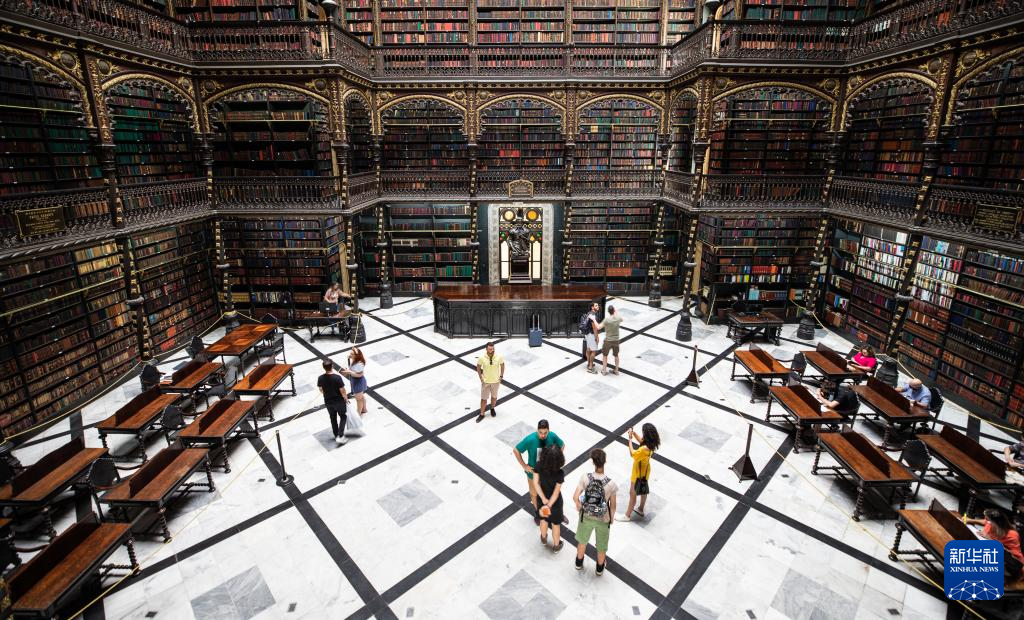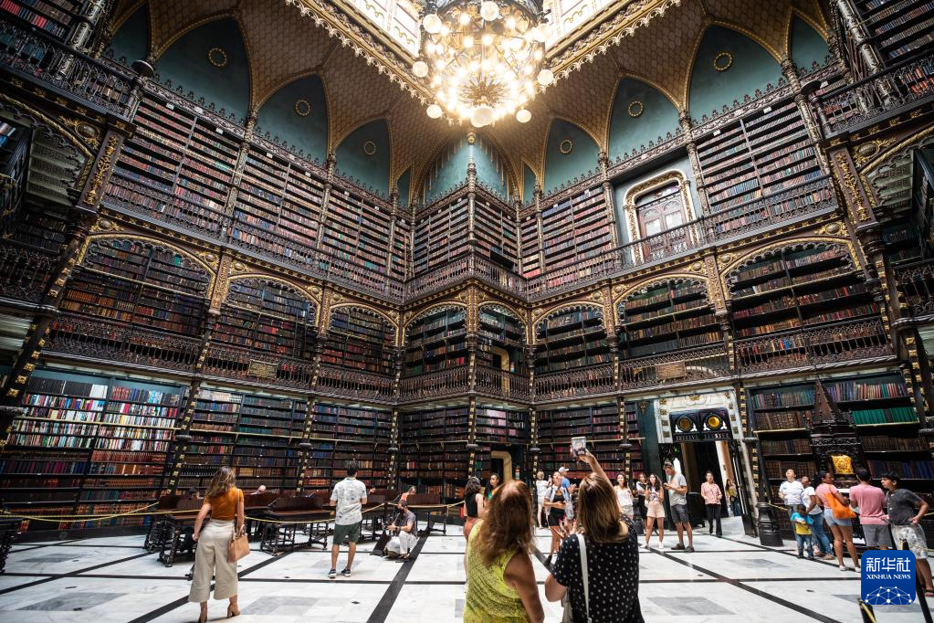 4月19日,在巴西里约热内卢,人们在皇家葡文图书馆内参观。