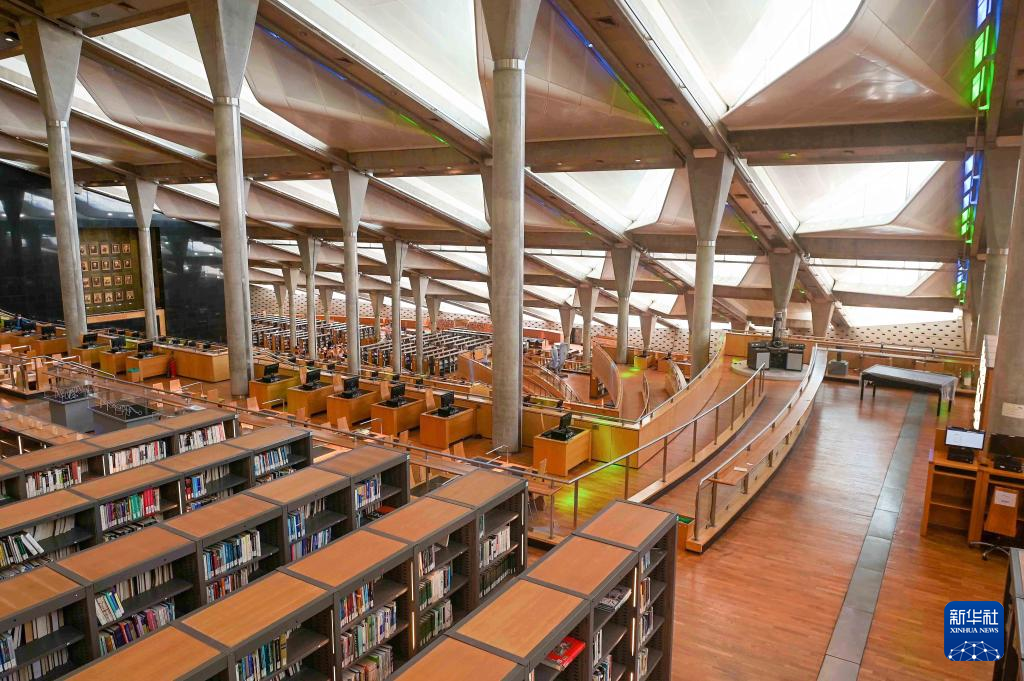 这是4月19日在埃及亚历山大拍摄的亚历山大图书馆内景。