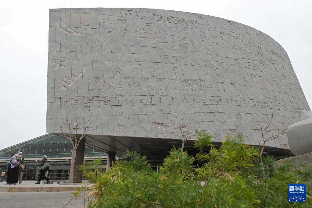 这是4月19日在埃及亚历山大拍摄的亚历山大图书馆外景。
