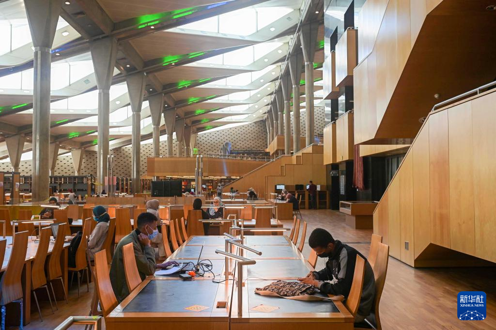 4月19日,人们在位于埃及亚历山大的亚历山大图书馆内阅读。