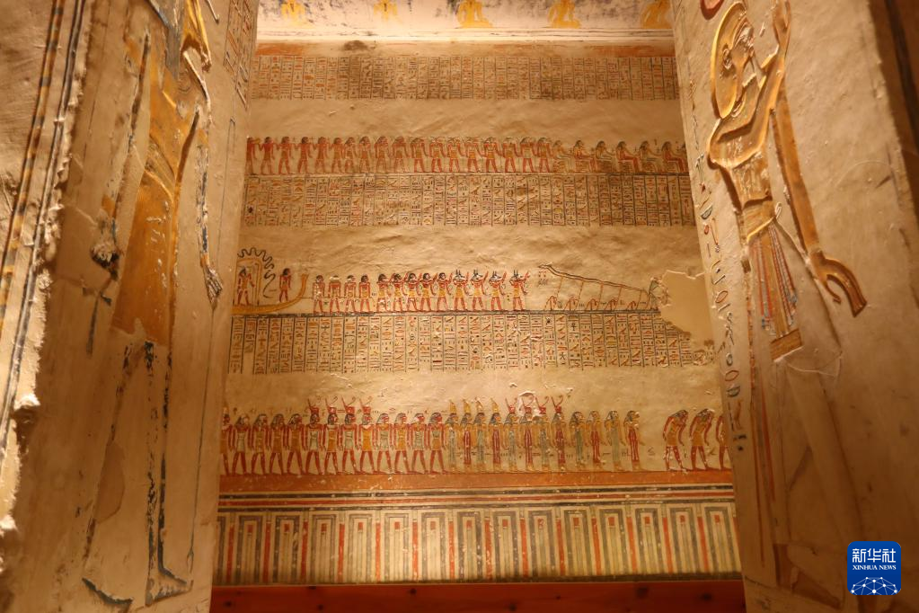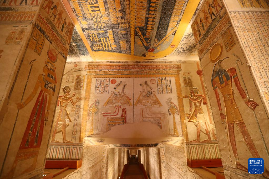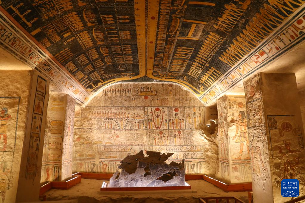 这是4月26日在埃及卢克索帝王谷拍摄的法老拉美西斯六世陵墓内的浮雕和壁画。