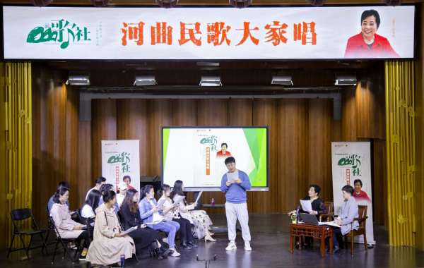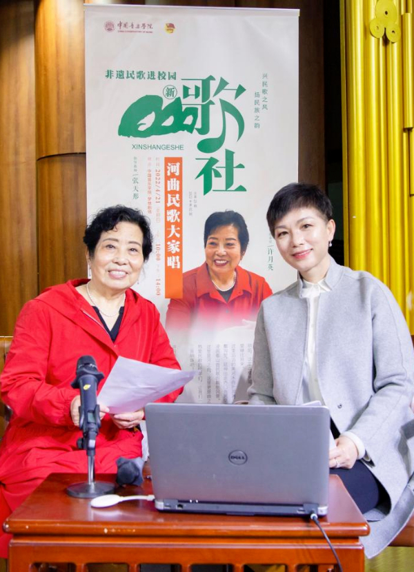 新华网北京4月29日电(邢贺扬)中国音乐学院“新山歌社”近日在校内梦想剧场举办了河曲民歌大家唱专题活动,特别邀请到国家级非遗项目二人台代表性传承人、国家一级演员许月英。