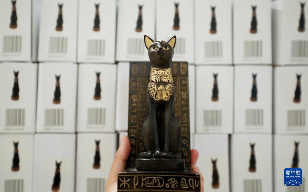 这是5月11日在英国伦敦大英博物馆拍摄的以藏品“盖尔-安德森猫”为灵感的文创产品。“盖尔-安德森猫”是一件古埃及青铜猫坐像,收藏家盖尔-安德森1939年将其捐赠给大英博物馆,从此雕像得名“盖尔-安德森猫”。