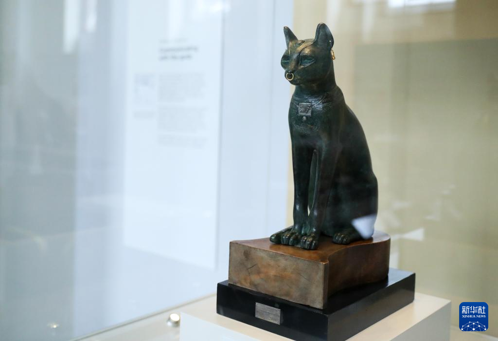 这是5月11日在英国伦敦大英博物馆拍摄的藏品“盖尔-安德森猫”。“盖尔-安德森猫”是一件古埃及青铜猫坐像,收藏家盖尔-安德森1939年将其捐赠给大英博物馆,从此雕像得名“盖尔-安德森猫”。