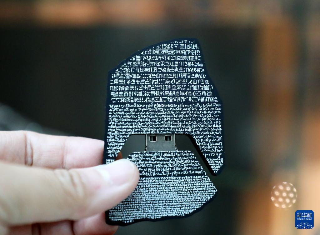 这是5月11日在英国伦敦大英博物馆拍摄的以藏品罗塞塔石碑为灵感的文创产品。罗塞塔石碑上刻有三种铭文,文字学家凭借这些铭文破译了古埃及象形文字的秘密。