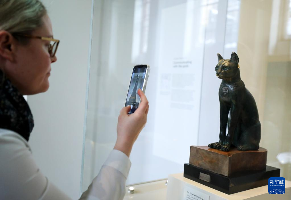 5月11日,在英国伦敦大英博物馆,参观者拍摄藏品“盖尔-安德森猫”。“盖尔-安德森猫”是一件古埃及青铜猫坐像,收藏家盖尔-安德森1939年将其捐赠给大英博物馆,从此雕像得名“盖尔-安德森猫”。