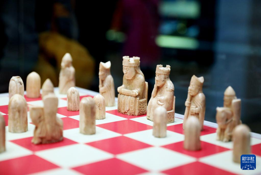 这是5月11日在英国伦敦大英博物馆拍摄的藏品刘易斯棋子。刘易斯棋子是在苏格兰的刘易斯岛发现的,棋子上的人物形象栩栩如生,各不相同。
