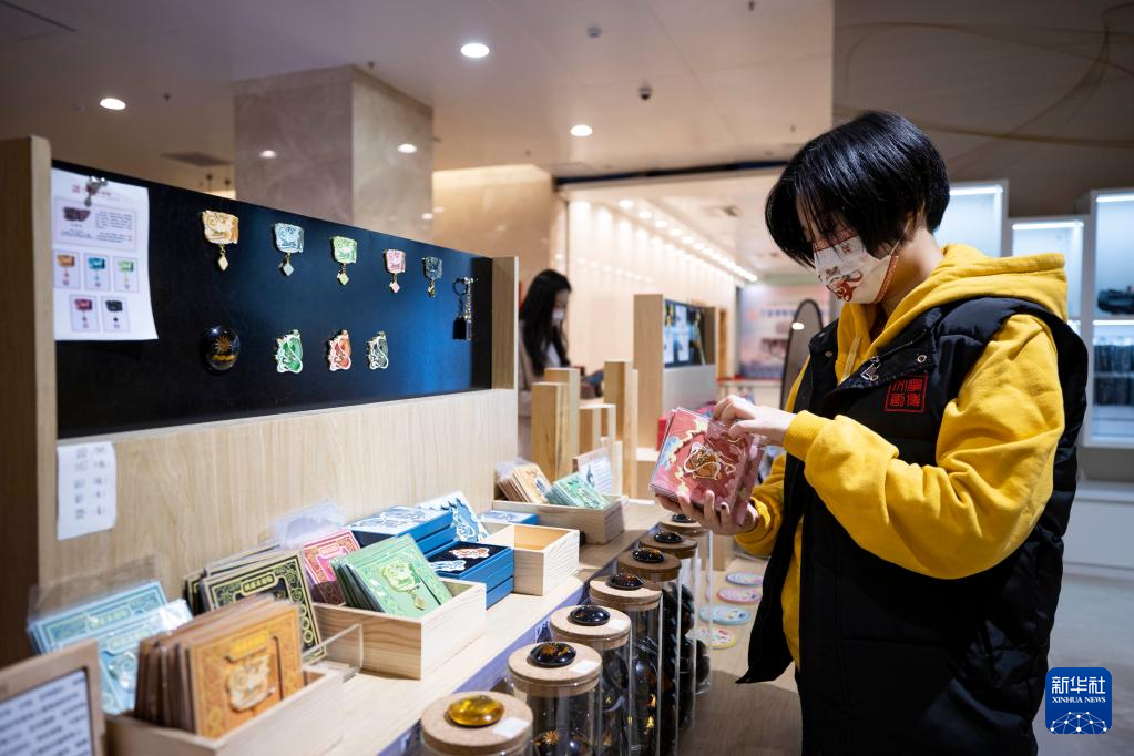 5月16日,工作人员在宁夏博物馆整理文创产品。