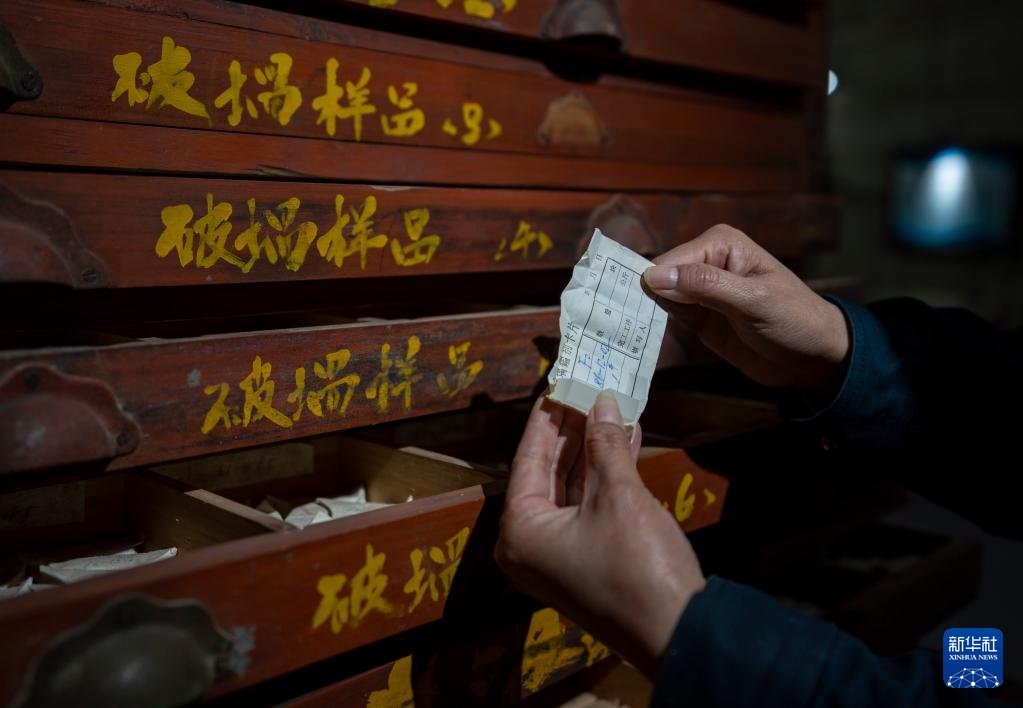 5月16日,工作人员在展示玻璃样品柜内的一个玻璃样品。