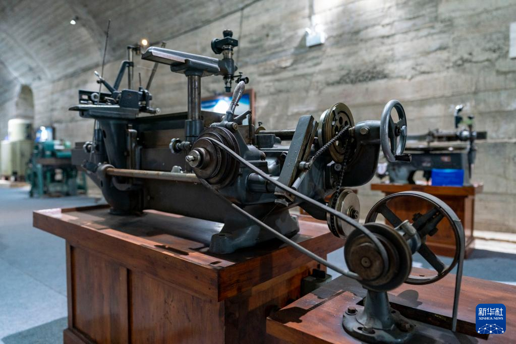 这是5月16日拍摄的中国光学历史博物馆内收藏的螺纹车床。