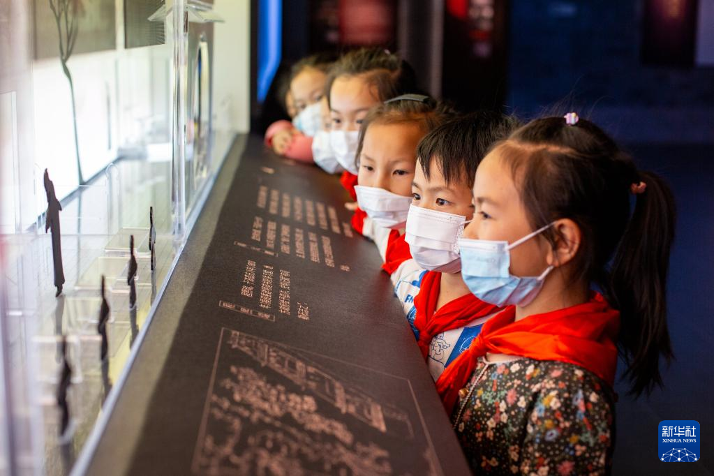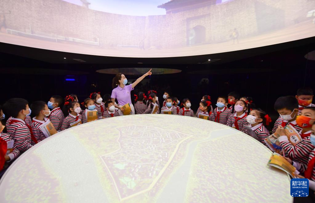 5月17日,在江西省赣州市章贡区福寿沟博物馆内,学生们在老师的带领下参观学习。
