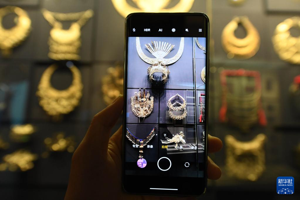 5月17日,在贵州省博物馆,游客用手机拍摄展品。