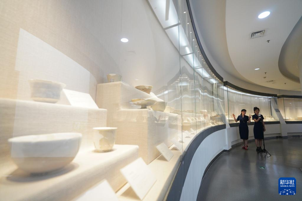 5月17日,讲解员在河北省邢台市内丘县邢窑博物馆进行网络直播。