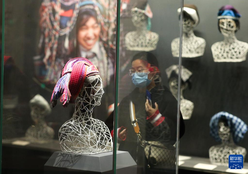 5月17日,游客在贵州省博物馆参观贵州民族服饰。