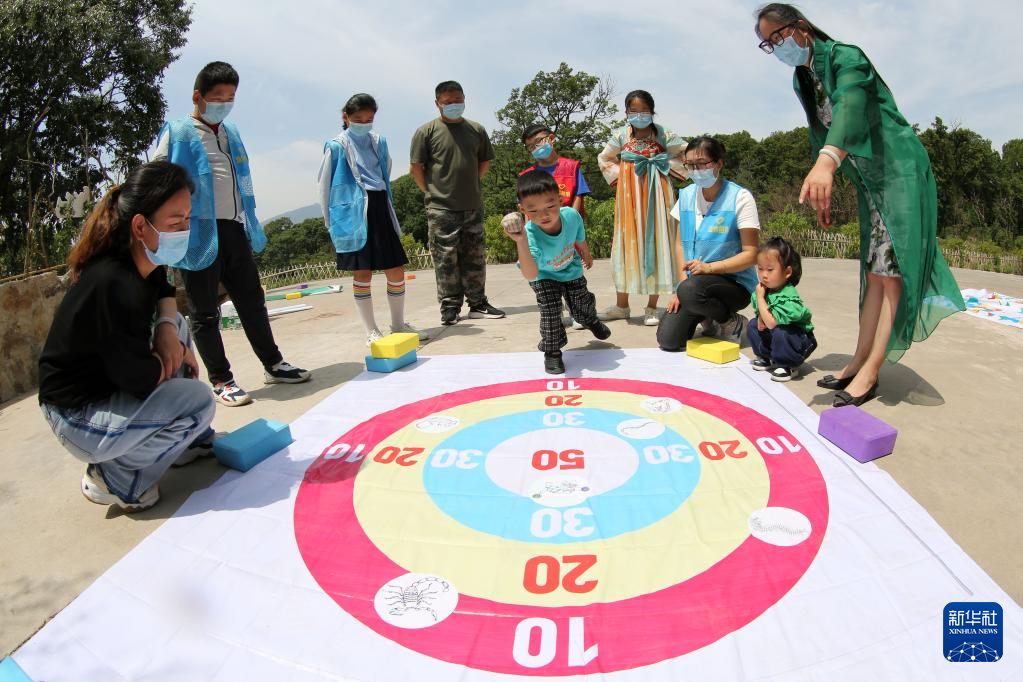 5月28日,在江苏省连云港市连云区连岛街道,孩子们在体验端午习俗“射五毒”。