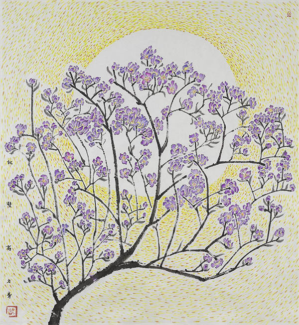 她是用心灵在编织着美感,摆脱了逻辑的纠缠和理性的束缚,遵循的是自己的感觉,契合的是那种心灵的超验,一切都是自由意志的彰显。所有的审美创造都被切换成符号语言,不期然而然!那幅只题几行秀丽的篆书小字而空无一物的作品,绝不是在玩西方的达达,而是在吟东坡之句∶欲令诗词妙,无厌空且静。静故了群动,空故纳万境。冬青有很多作品中摘其空无营造着内心的艺术之境,一树芳枝,一叶之灵,兰气潇湘,月华洞庭,她知道,只有心绪的清寂才能换得画面的纯净。她将艺术之灵根深扎于传统文化的土壤,承接着当代意识的化育;她的许多画面端的就不是要你评述,只送你丰富的联想与享受,以她挥之不去的艺术感染力,让你无法躲避的沉醉。面对她的作品,任何来自本体语言的剖析都有可能伤害裹藏其中的诗意。