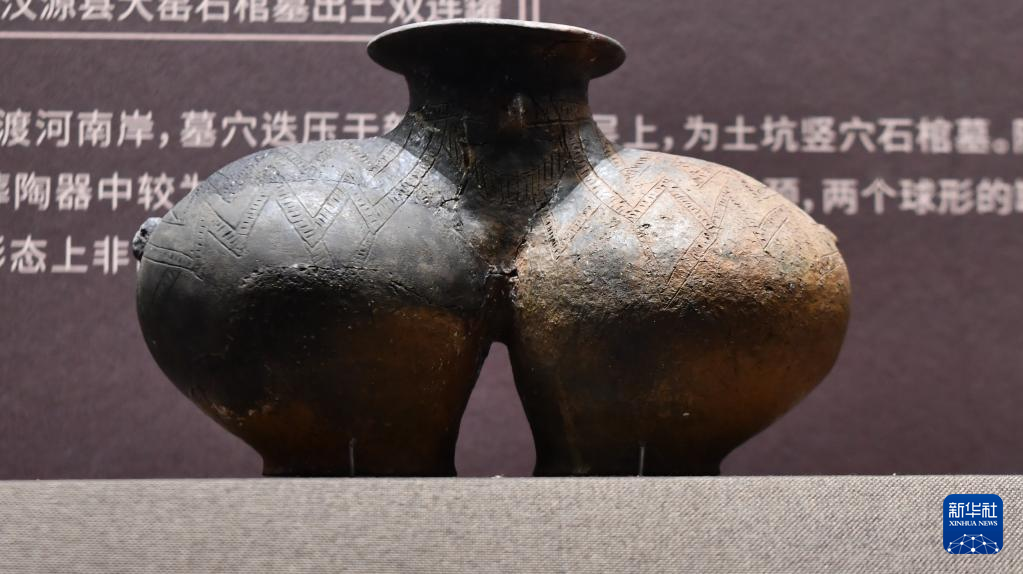 这是6月29日拍摄的西藏博物馆收藏的双体陶罐。该陶罐出土于西藏昌都卡若遗址,是新石器时代西藏陶器的代表作。