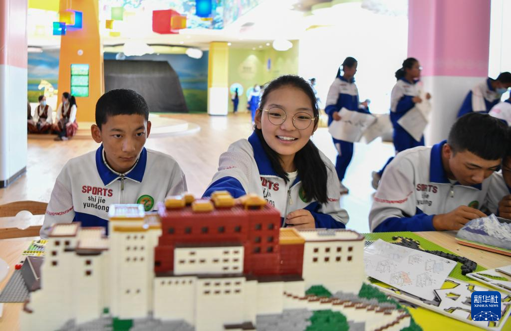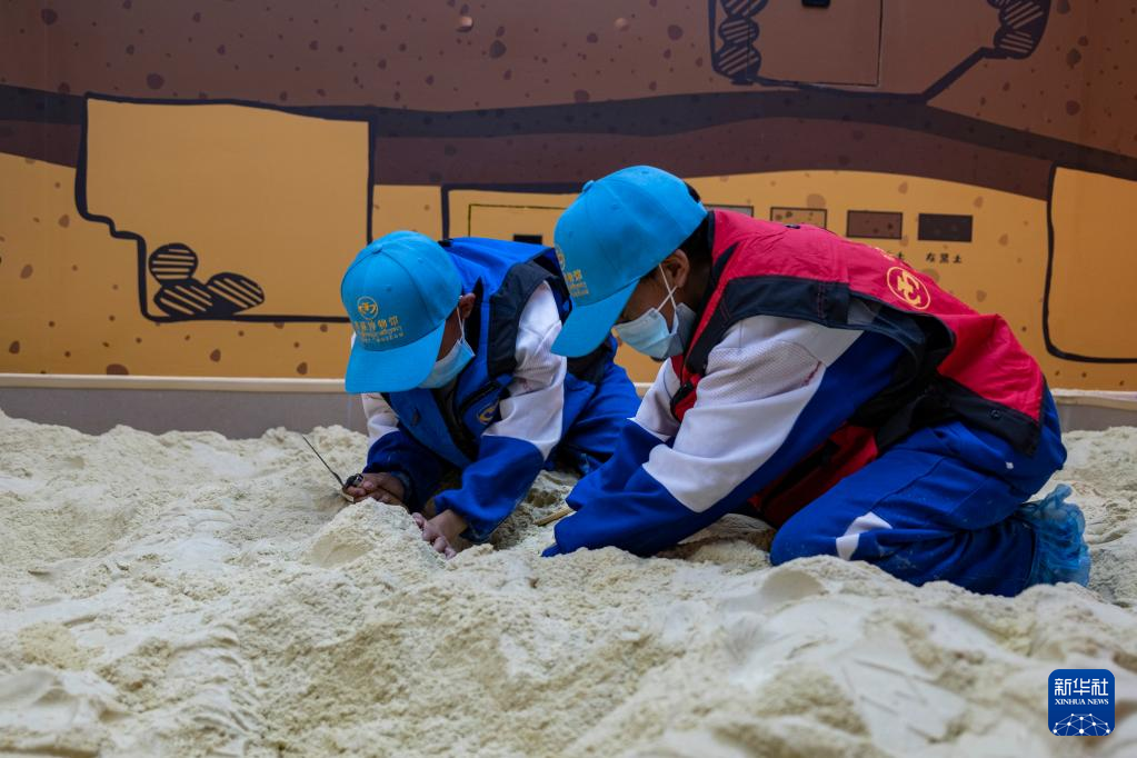 7月8日,学生代表在儿童体验馆参与互动体验项目。