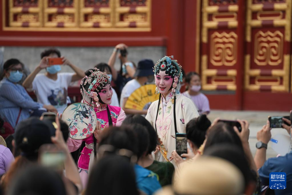 7月30日,市民游客在欣赏北方昆曲剧院演员表演昆曲《游园惊梦》。新华社记者 鞠焕宗 摄