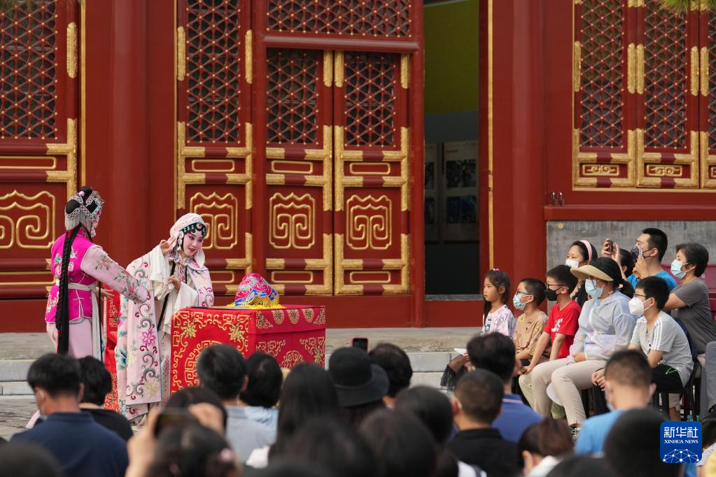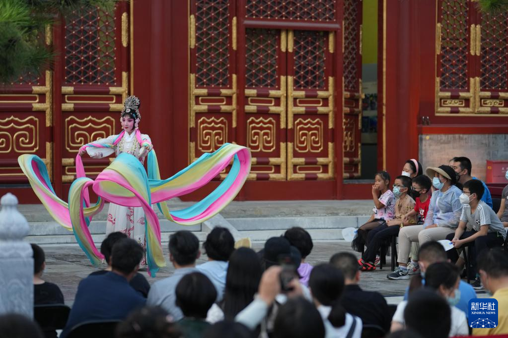 7月30日,市民游客在欣赏国家京剧院演员表演京剧《天女散花》。新华社记者 鞠焕宗 摄