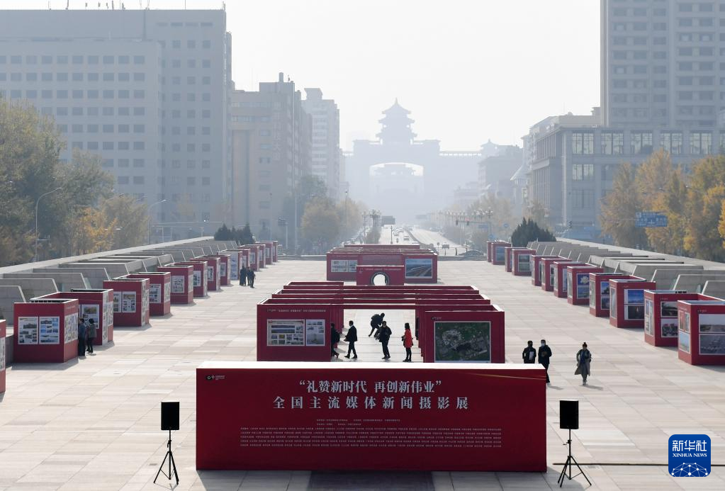 这是11月10日在中华世纪坛拍摄的“礼赞新时代 再创新伟业”全国主流媒体新闻摄影展现场。