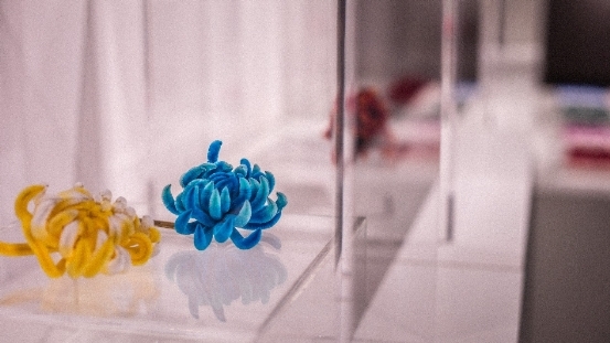 在非遗传承的道路上,还有哪些创新值得尝试?赵树宪一直都是“边走边想”。跨界设计师的“大胆”让传统的赵树宪启发了灵感。为世界知名香水品牌Acqua di Parma设计制作绒花限量版礼盒、与恋爱综艺栏目《心动的信号》跨界联名,在透明的亚克力礼物盒中呈现绒花制作的“爱情信号鱼”……这些年,南京绒花一直在表现形式上创新,更符合当下审美。
