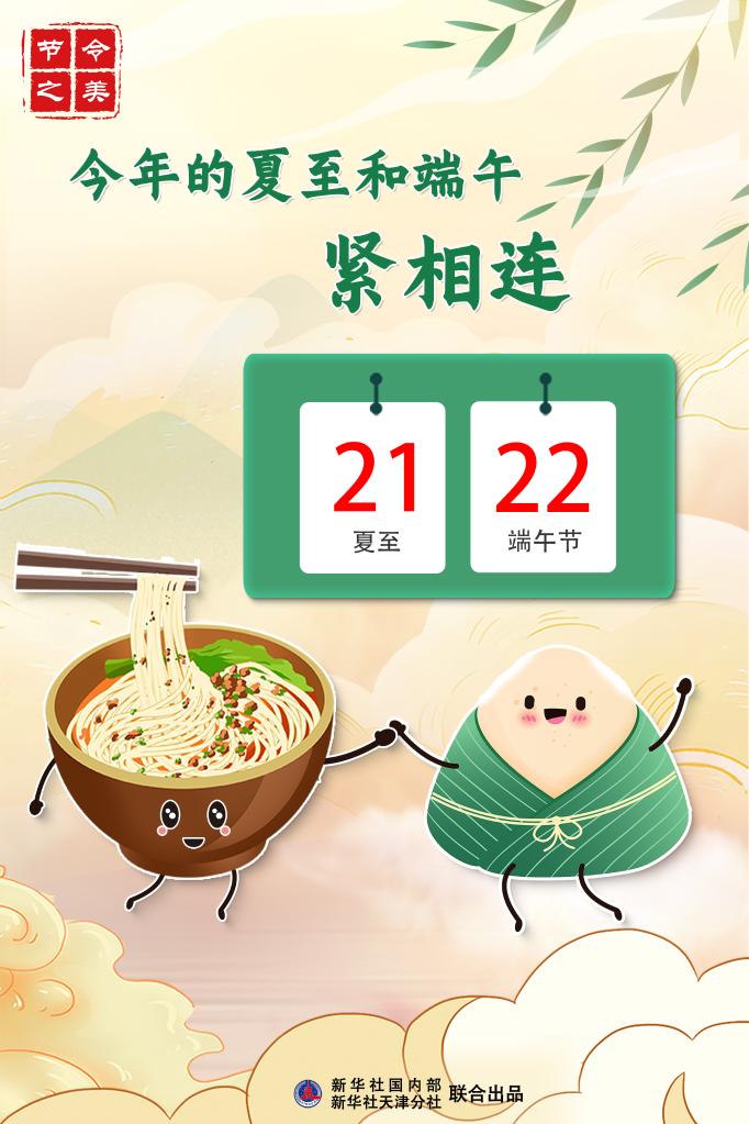 夏至,是北半球一年之中白昼最长、夜晚最短的一天,我国大部分地区在这一天都十分流行吃面的习俗;端午节是我国首个入选世界非物质文化遗产的节日,在这一天民间有吃粽子的习俗。