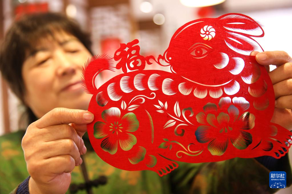 春节临近,国家级非遗丰宁满族剪纸代表性传承人石俊凤以兔为主题,创作“迎春兔”“招财兔”“幸福兔”等系列生肖兔剪纸作品,表达对新春的祝福,迎接兔年的到来。