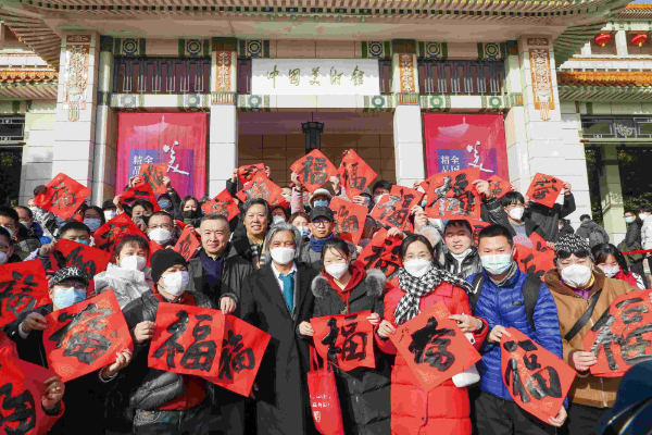 翰墨飘香年味浓。大年初一,中国美术馆举办“送福贺新春”活动。艺术家们挥毫泼墨书写“福”字,近500份手书“福”字送到兔年新春入馆观众的手中,送上新春祝福。据了解,中国美术馆大年初一写福送福贺新春活动已成为该馆传统文化惠民项目。