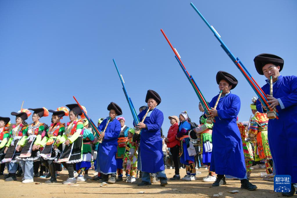 当日是大年初八,在贵州省黔南布依族苗族自治州龙里县龙山镇中排村,各村寨的苗族群众欢聚一堂,举行一年一度的“跳月”活动,欢庆新春。“跳月”是当地苗族群众祈福风调雨顺、欢庆新春的传统民俗活动,也是苗族青年男女寻找意中人的大型社交活动。
