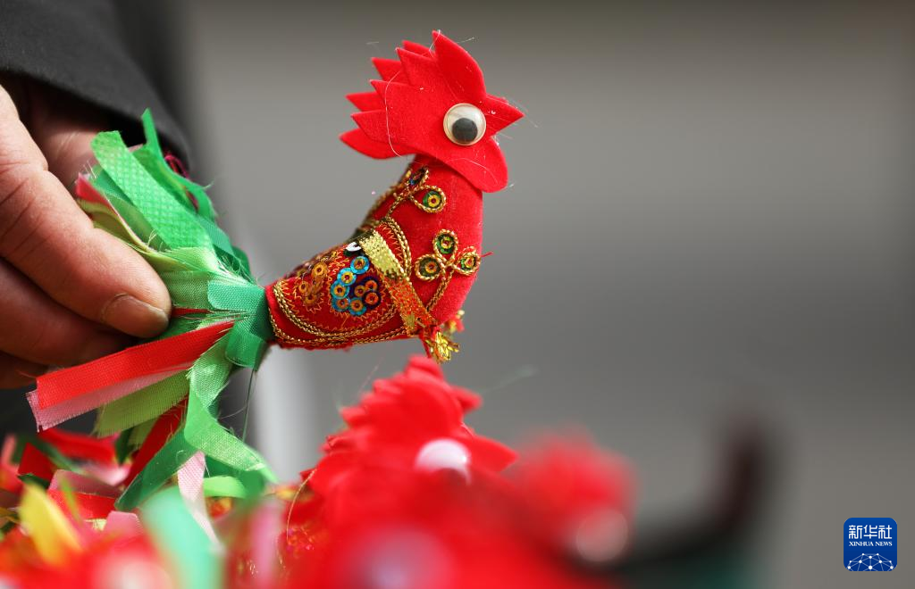 立春将至,山东省临沂市郯城县的民间手工艺人忙着用彩色棉布和棉线等缝制“春鸡”。鲁南部分地区有在立春给孩子佩戴“春鸡”的习俗,以此希望孩子在新的一年里茁壮成长、吉祥平安。