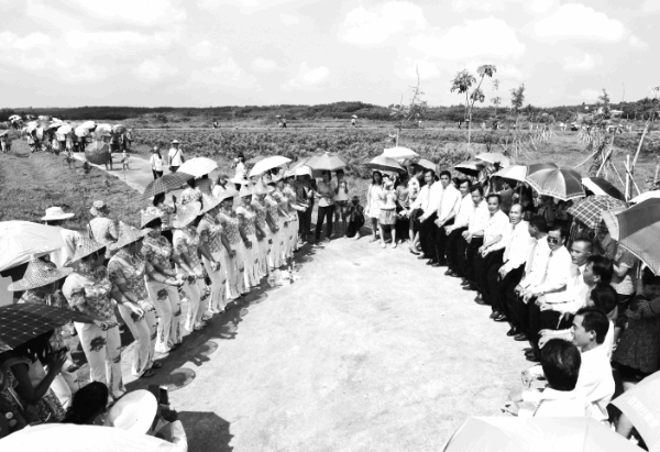 儋州调声国家级代表性传承人唐宝山告诉记者:“在传播手段有限的年代,调声就是最好的娱乐消遣。不需要固定的场所和时间,男女青年集体对唱,手拉手站成两排,律动身体,以歌抒情。”