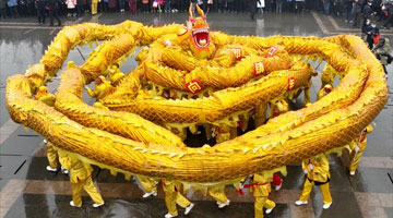 2月14日,在承德市双桥区石洞子沟小学,学生在老师的指导下练习舞狮。