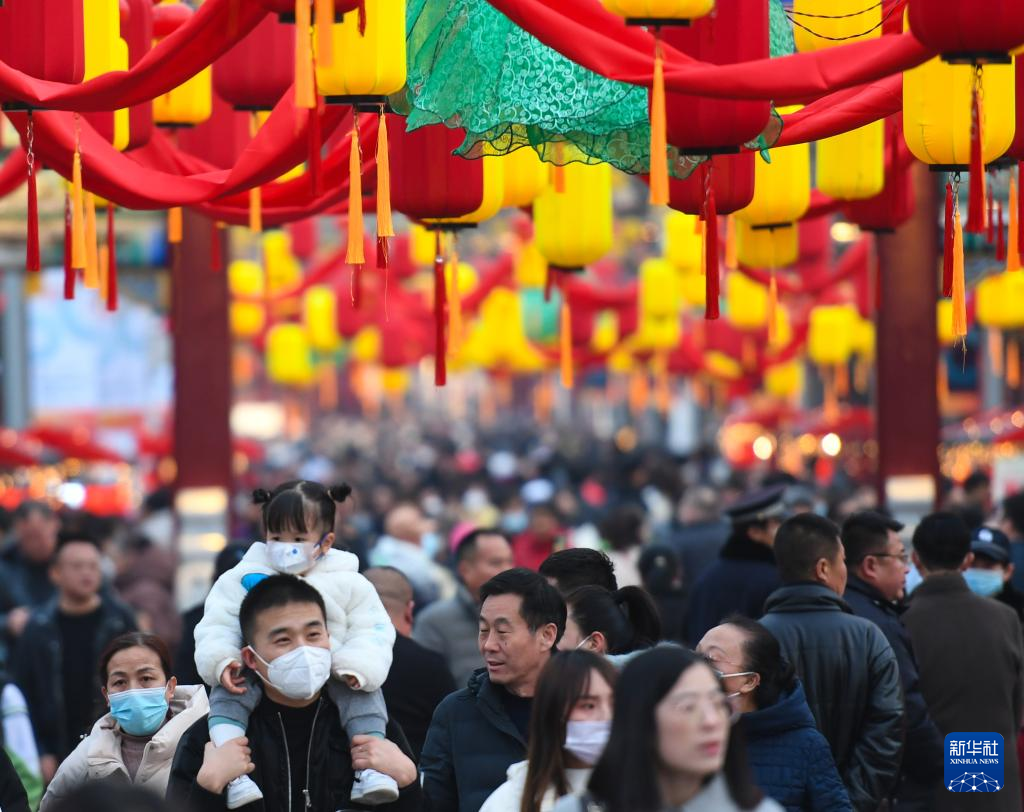 游客在榆林老街非遗大集游览(2月17日摄)。