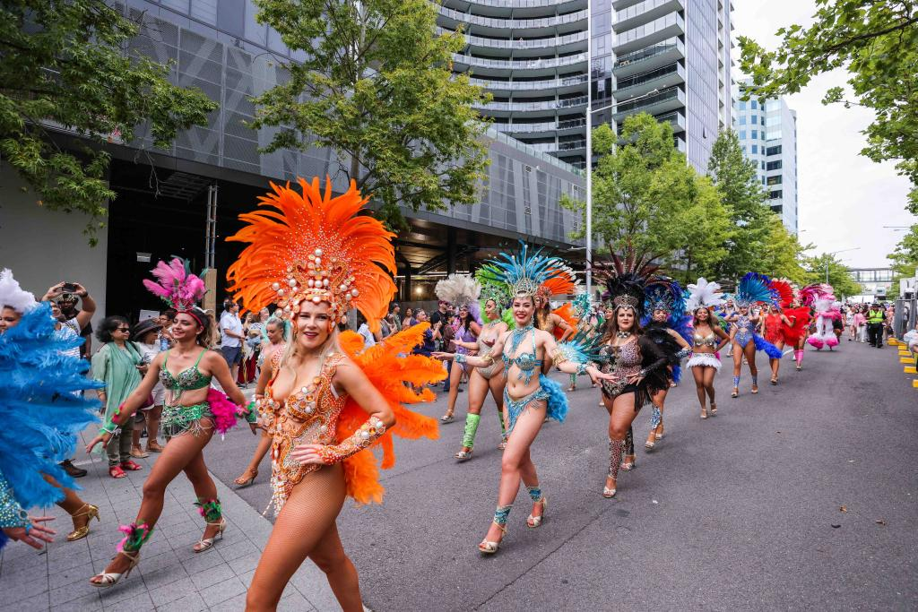 游行队伍包括近百辆花车、盛装马车以及几十个演奏方阵,向聚集在沿途的人们抛洒糖果、巧克力、鲜花等礼品,现场气氛热烈。据主办方介绍,今年的游行共向人们抛洒约300吨糖果、90万盒巧克力和30万束鲜花。