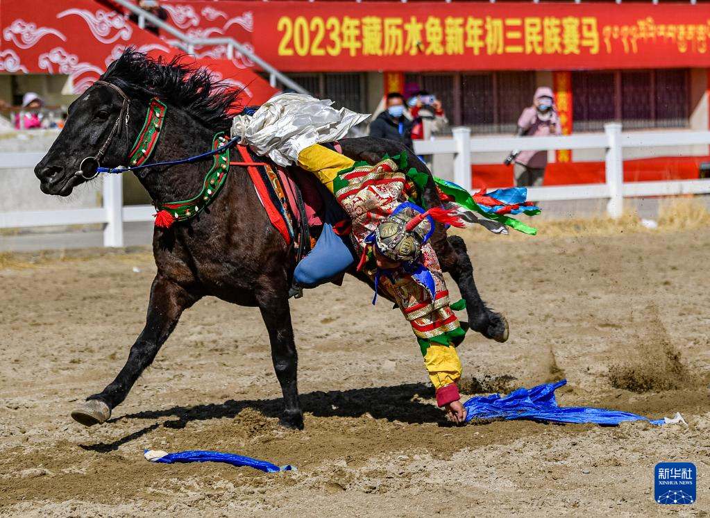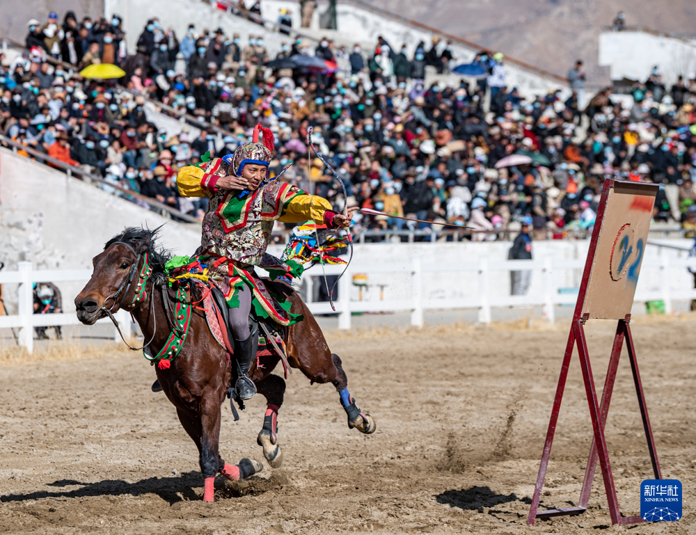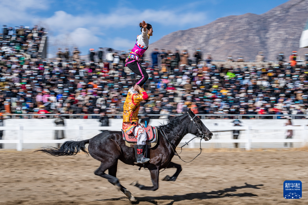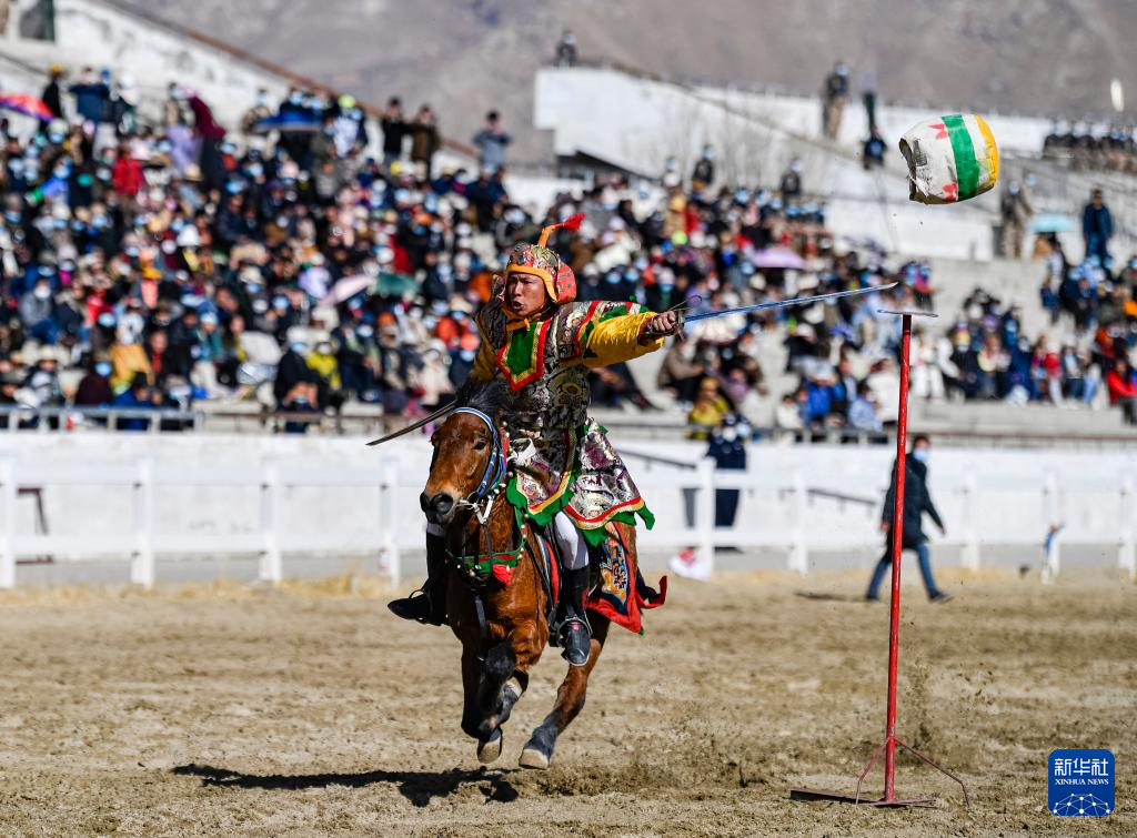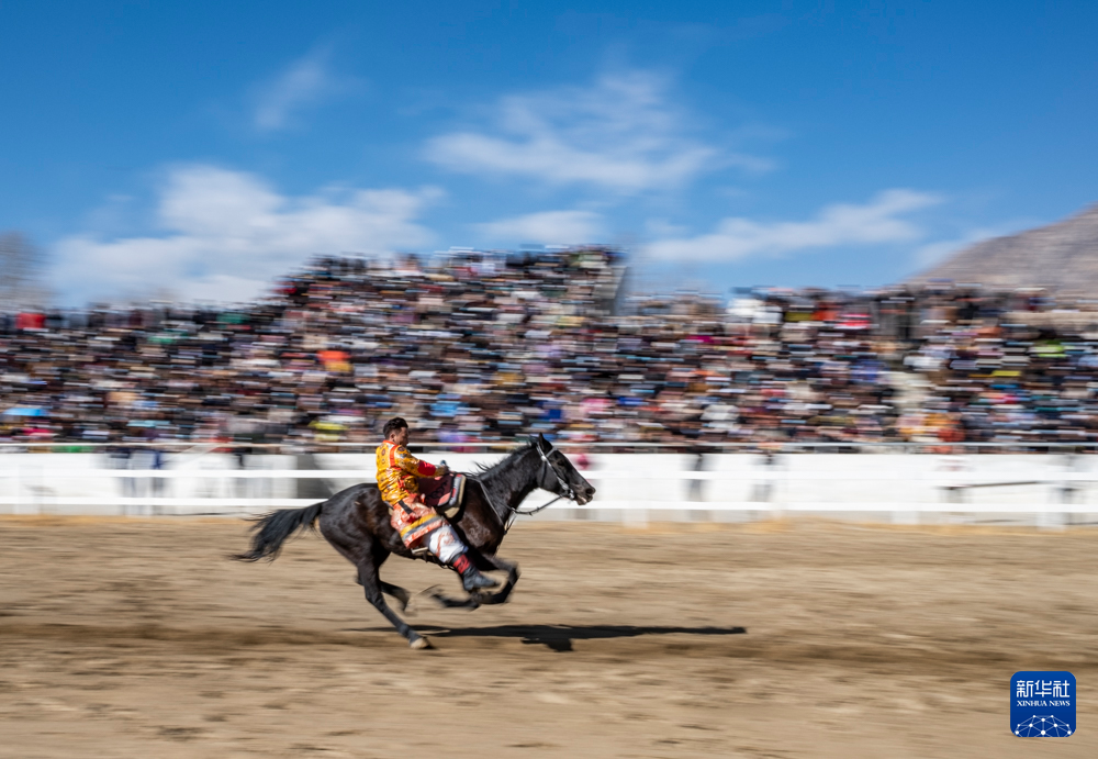 每年藏历新年初三,在拉萨赛马场举办马术表演已成为当地庆祝新年的传统,深受广大群众喜爱。骑手们英姿飒爽,为观众们带来骑马拾哈达、骑马射箭等精彩表演。