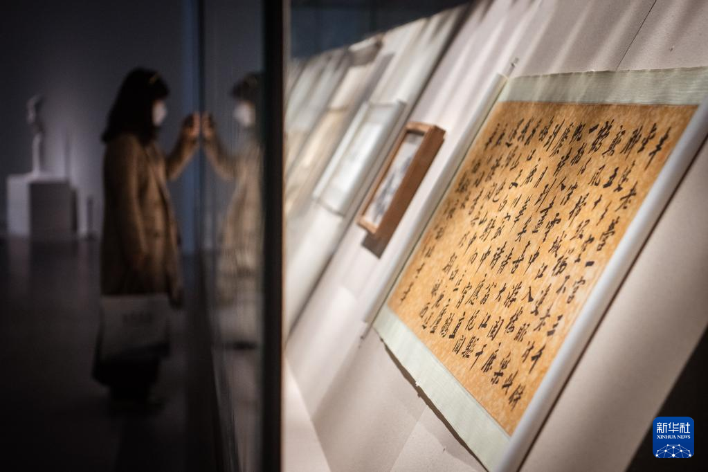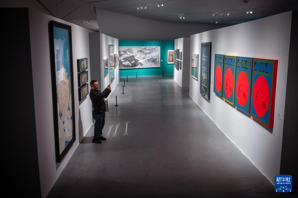 3月16日,参观者观看展出作品。