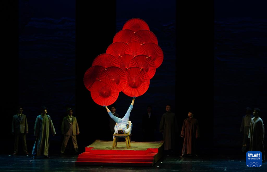 3月21日,在位于山东省济南市的山东省会大剧院,演员表演魔术节目《飞花令·伞》。