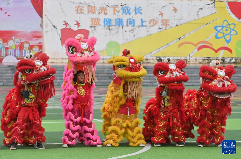 近年来,广西梧州市藤县积极推进狮舞人才梯队建设工作,开展“狮舞文化进校园”活动,将融武术、舞蹈、音乐、杂技等为一体的狮舞列入中小学及幼儿园课程,通过知识学习、兴趣培养、专业训练等方式,引导青少年儿童继承和发扬优良的民族传统文化。