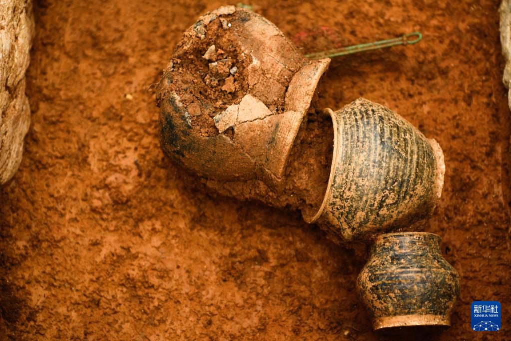 这是3月30日在贵州贵安新区大松山墓群挖掘现场拍摄的出土文物。