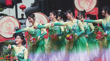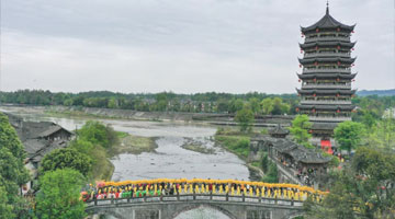 4月6日,工作人员在展示虚拟汉服穿戴。