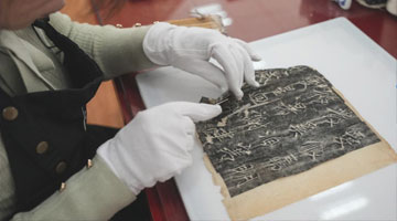 4月26日,外宾在陕西石峁遗址文物医院展厅参观调研。