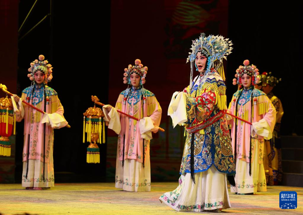 4月26日,演员在开幕式演出现场表演秦腔、晋剧、滇剧、河北梆子等多剧种版《大登殿》。